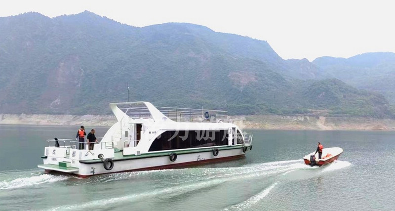 21米新能源庫區(qū)工作船,是我司設計建造的一款集環(huán)保、高效與先進科技于一體的新能源船舶。該船采用純電動力系統(tǒng),搭載高性能的鋰電池組,實現(xiàn)了零排放、低噪音的綠色航行,專為紫坪鋪水庫水域設計,旨在提升庫區(qū)作業(yè)效率與環(huán)保水平。船體結構堅固耐用,配備先進的導航與通訊設備,確保航行安全與作業(yè)效率。 |